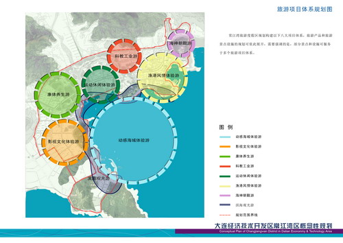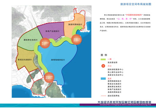 其次是本次規劃的目標 把常江灣建成以休閑度假為核心,以海洋旅游為重點、以鄉村旅游為亮點、以商務旅游為熱點,逐漸形成以精品項目為支撐的多元化旅游產品體系,實現國際一流的海上運動休閑度假旅游目的地的戰略目標。 自然景觀及旅游資源分布圖 再次是空間布局的構思 在空間布局上我們力求凸顯常江灣區兩大特色:一是生態功能;二是海洋旅游。 總體呈“一帶三心五片”格局。 一帶: 海濱景觀帶 空間布局規劃圖 旅游項目體系規劃圖