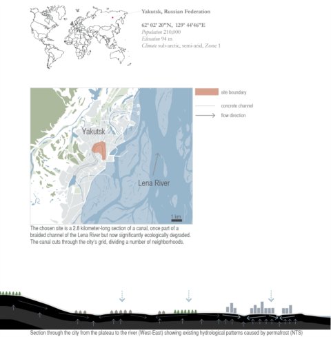 該項(xiàng)目建在2.8公里長(zhǎng)的一個(gè)運(yùn)河段上,該河段曾是列娜河支流的一段,但目前生態(tài)退化嚴(yán)重。它貫穿雅庫(kù)次克城,將其分成若干街區(qū)。
