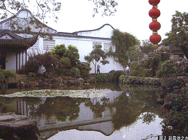 蘇州古典園林大多以山水為布局中心,或以山為主,以水為輔;或以水為主,以山為輔。而水亦有聚散之分,一般大園之水,以聚為主,以分為輔,但卻能賓主分明,如拙政園中部園林。小園之水,則大多聚而成池,而且常一水居中,再貫以小橋,環以廊屋,網師園就是其中最為典型的一例(圖1)。清代乾隆年問的著名學者錢大昕曾評之日:“地只數畝,而有纖回不盡之致,居雖近廛,而有云水相忘之樂”(《網師園記》)。然其云影水色則完全得益于園中的半畝方沼一彩霞池。