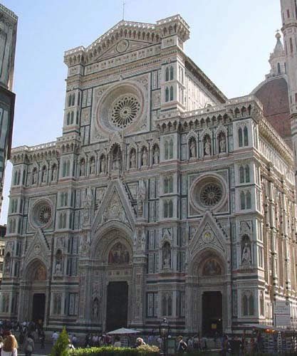 ![]() 圣瑪麗亞鮮花大教堂是文藝復興時期第一座偉大建筑。1295年由阿爾諾沃·迪卡姆比奧在原先的佛羅蒂諾大教堂的基址上興建,1496年才最后完工。