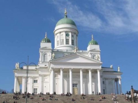 ![]() ![]() 十九世紀純白綠頂教堂,外型宏偉飄逸是首都最矚目地標志。建筑是新古典主義風格典范。于1852年依據CLEngel設計完成。大教堂高出海平面80多米,在大海上一眼便能看見,使之成為赫爾辛基的象征。