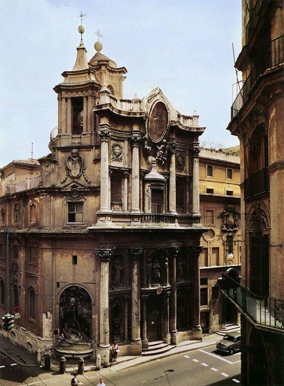 從17世紀30年代起,意大利教會財富日益增加,各個教區先后建造自己的巴洛克風格的教堂。由于規模小,不宜采用拉丁十字形平面,因此多改為圓形、橢圓形、梅花形、圓瓣十字形等單一空間的殿堂,在造型上大量使用曲面。