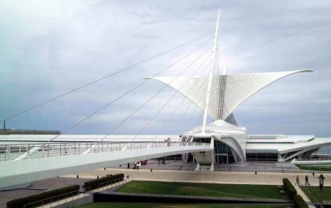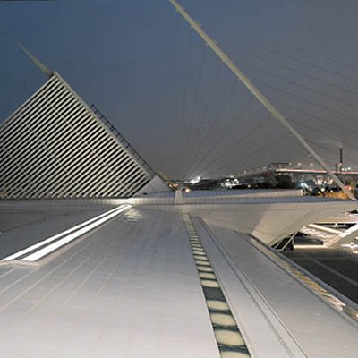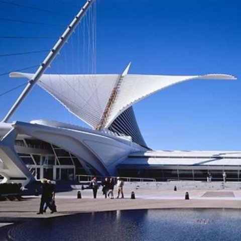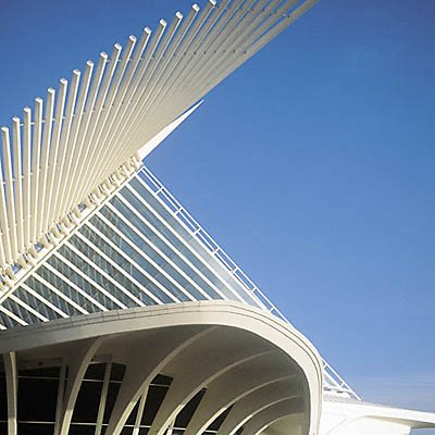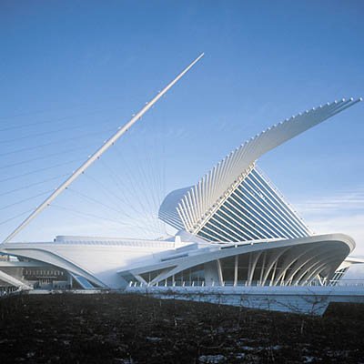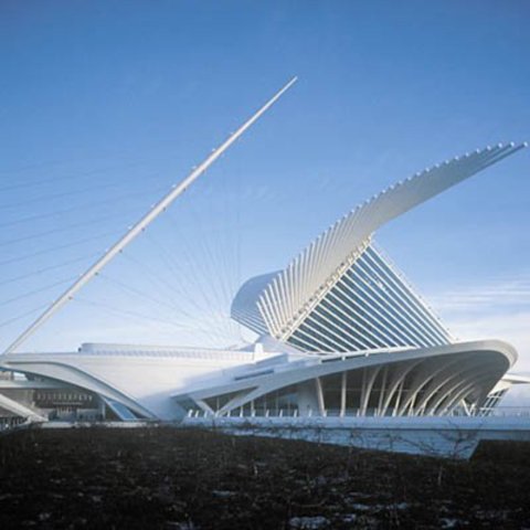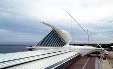 2001年,卡拉特拉瓦在美國(guó)的第一個(gè)作品建成,是威斯康星州密爾沃基的美術(shù)博物館擴(kuò)建工程。此地原有一個(gè)舊館,是在1957年由當(dāng)?shù)氐慕ㄖ䦷熓聞?wù)所設(shè)計(jì)的,這一次卡拉特拉瓦加建的Quadracci展廳,名號(hào)不大,其實(shí)卻造成了絕對(duì)喧賓奪主的局面。