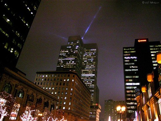 銀色的十字PLACE VILLE MARIE坐落在中央大車(chē)站正上方,1962年開(kāi)始啟用,首創(chuàng)了地下購(gòu)物區(qū)的觀念,這是貝聿銘走向國(guó)際建筑設(shè)計(jì)舞臺(tái)的開(kāi)山作品。每天晚上,樓上旋轉(zhuǎn)的探照燈,80公里以外都可以看的見(jiàn)。來(lái)到蒙城一定要去那里坐一坐,而且頂樓的舞廳,也是蒙城有名的休閑娛樂(lè)的好去處。
