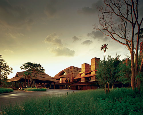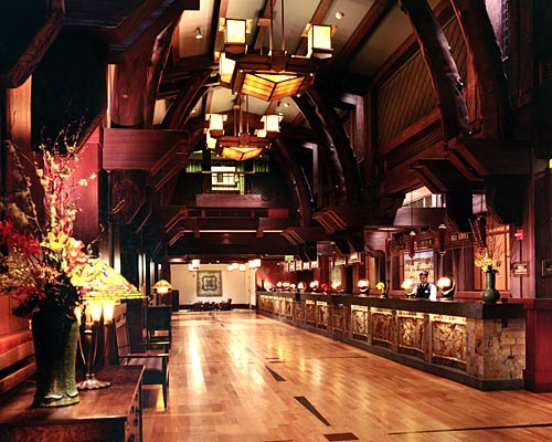 1、“迪斯尼動物王國旅館”前廳 丹佛建筑師彼得·多米尼克的非凡的性格和他對這座城市的中心地區重新開發的影響,將永久不會讓人們忘記。但他的遺產還包括他為迪斯尼公司設計的三個風格獨特的酒店——它們是在佛羅里達州奧蘭多的“原野風情旅店”(Wilderness Lodge)和“動物王國旅店”(Animal Kingdom Lodge),以及加利福尼亞州阿納海姆市的“迪斯尼加州大酒店”(Grand Californian Hotel)。