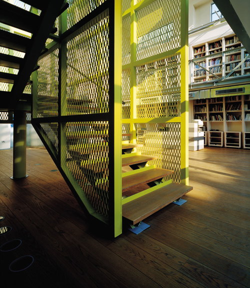 斯比克建筑設計合伙人事務所(Cibic&Partners)在建筑的內部設計了一個院子,在中層樓的環(huán)繞下,它令公共區(qū)域增色不少。院子的四周環(huán)繞著大面積的落地窗,成為吸引來訪者眼球的一大特色,并為內部空間提供了良好的光線來源。玻璃材質的引入令室內的空間感一天之內都有變化:清晨棱角分明,白天由于玻璃表面光的折射而形成空間的分隔,傍晚輪廓漸漸柔和,到了晚上,大廳空間又會有延伸的感覺。事實上,院子是文化軸心的具像化,建筑的其他區(qū)域都是圍繞這個軸心來布置的,而每一個空間在設計時,也都是從其預定的功能出發(fā),應用不同的哲學思想來構思。