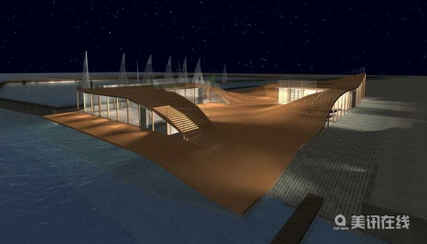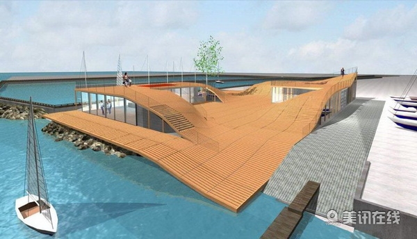 2004年6月丹麥PLOT事務所完成了的占地1,600m2的Maritime Youth House設計,這個小項目引起國際關注,該項目位于哥本哈根的商比港(Sundby Harbor),整個場地為兩個客戶所共享:一個帆船俱樂部和一個青年之家。 位于海邊的基地布滿重金屬污染物,起初決定花費總預算的25%來清理場地,最后PLOT事務所決定所有投入直接用在建筑上,他們在場地上滿鋪了一層起伏的木質甲板。最終的建筑形式是將兩個客戶的矛盾需求進行協調:甲板翹起部分之下可以作為船房,而上部仍是小孩休閑運動的場地。 建筑室內十分簡樸,前方的活動室和后方的工作室都是水泥地坪,這種對于通常外硬內軟的地坪處理的反常,正是表示了這個建筑的真正“房間”就是室外的活動平臺。這個作品因其對有限資源的富有想象力的回應及對于新的幾何系統的機智掌控,獲得2004年度英國《建筑評論》的AR+D新建筑獎,并獲得2004年度歐洲密斯凡德羅獎的提名。