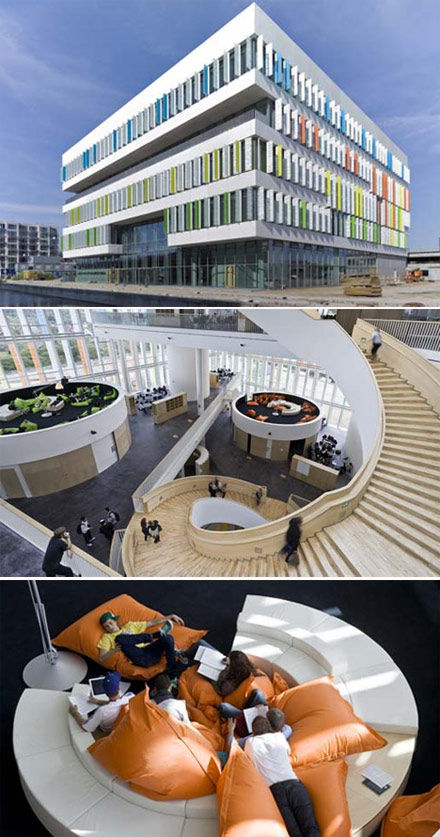 如果所有的高中、大學校園都這么漂亮,估計入學率肯定暴漲。有人可能認為,對于學校而言,虛華的外表并不重要,但是,這不能成為校舍乏味、死板和無聊的理由。我們下面為大家盤點的15款校園建筑設計,以其創新的設計成為眾人矚目的焦點,成為學生們引以為豪的光榮學校建筑。毋庸置疑,至少在青少年們眼中,這些建筑成為了他們向往入讀該學校的最大原因。 1、哥本哈根 restad高中的“玩具大盒子”