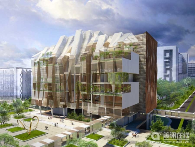 ![]() ![]() ![]() 最近,英國的BM公布了他們的新加坡國家心臟研究中心(National Heart Center in Singapore)設計方案,這個醫院是新加坡一個大規模總體規劃項目中的一部分,該項目旨在以更加先進的技術、更環保的方式重新開發General Hospital Outram Campus。 在BM的方案中,醫院高10層,減少了病人的移距。前面六層主要容納醫院的活動區域,配備有實驗室、手術室、X光室以及其他相關科室。大樓的其余部分主要針對對病人免費的設施,例如員工培訓設施等。 該大樓一個最顯著的特征是其豐富的開放空間,促進了病人、員工與工作人員間的交流。這些開放空間有庭院,也有花園,自然采光、通風,這些都有利于病人的康復,用戶通過一處寬敞的接待處進入醫院。 開放性這一設計理念體現在大樓的各個部分,大廳被擴大產生了更多的流通空間。擴大通道有雙重目的,既能為用戶提供更多的零售機會,也為員工的運營效率創造了更多空間。 BM設計的這棟大樓采用模塊化的方式建造,這將加快建設進程。項目建設將從09年9月份開始,預計到2012年春天完工。