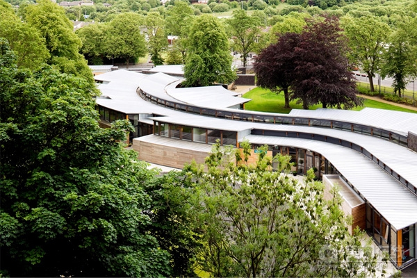 美國設計分享獎(DesignShare Awards)的目的是發現新的學習氛圍,以滿足創意設計與首創教育交叉領域發展的需要。今年,獲得大獎的是來自英國格拉斯哥的Murray + Alan Dunlop建筑設計公司,他們的獲獎項目是Hazelwood特殊學校的設計,這也是英國第一個獲得該獎項的學校類設計。 Hazelwood特殊學校是專門針對4到18歲的有嚴重的視覺或感官障礙或身體殘障的孩子們進行教育的學校。教學樓比水平面要低,是一座形式自由、流暢的建筑物,其彎曲的造型與原有基地由石板路和櫸樹構成的沒誒里景觀天然地融合在一起,顯得格外優雅。大樓結構主要由木材來支撐,而包墻材料則選用的是耐風蝕性能高的天然材料,這樣既能保持房間的溫度,又能提高孩子們的感官察覺能力。而在主通道區域則設計了一面非常有特色的“感官墻”,墻面上的折痕可幫助盲童定位和辨認方向。而設計師們別出心裁設計了一塊“穿梭”于整個學校的板,可讓孩子們很方便地進行復健練習。 ![]() ![]() ![]()