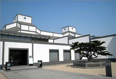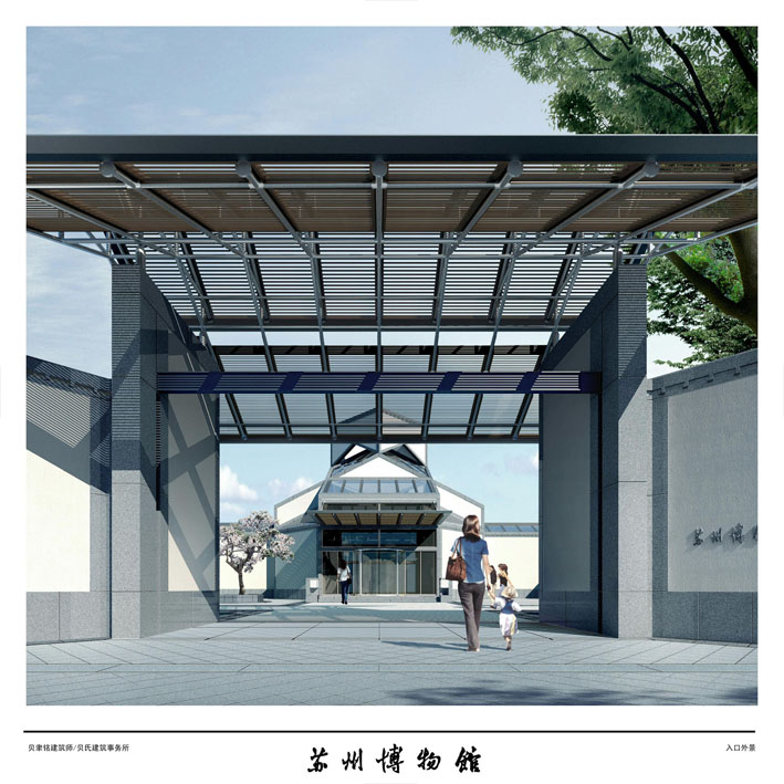 五、新穎的陳列手段 蘇州博物館新館建筑中的室內設計部分,包括陳列展覽幾乎均由貝聿銘本人設計,以保證內外風格和所有功能的和諧統一。 考慮到蘇州工藝在全國地位斐然,蘇州博物館中以明清工藝為主的展品更是小巧玲瓏、精細絕倫,因此,在貝先生的設計中,展廳不采用大開間,而是對展廳進行巧妙地分割,根據每個展廳及展品的特點量身定做。展廳的設計采用了1.35米的模數,為展廳大小和不同的展示功能要求帶來了靈活性。如位于二層的兩個八角形空間內的書畫廳,巧用九宮格,中間貫通,展廳頂部為玻璃天頂,高大的墻面對表達條幅式書畫的用光和所需墻面十分有利,展廳內部簡潔、素雅。墻面由木邊鑲框,地板由石邊鑲圍。 除了字畫之外,蘇州博物館的收藏多為小件藏品,貝先生認為“小件的東西你放在大的柜子里看,好象是友誼商店一樣,擺滿了,不對的,所以,我做了很小的,給每一個寶貝有一個柜子,有它的照明,這是新的,這是美國、歐洲都沒有,他們的收藏跟我們不一樣,適宜蘇州自己的收藏!?這些細節中處處體現著建筑大師的風范。 六、先進的功能設施、 在新館售票廳內,設置了三個先進的大型等離子液晶屏幕,循環播放博物館的有關信息內容;在中央大廳內,設置了兩個電子觸摸屏,通過選項,可了解博物館的各種信息;中央大廳內還設置有存包處、殘障人輪椅、中英文講解導覽器等服務設備和設施。 通過中央大廳東側的天窗廊道,進入新館的東部。廊道盡頭設紫藤園和休憩茶室。紫藤園的南北兩側安排有專業圖書館、貴賓廳、博物館商店等服務設施。 地下西南角有一部分博物館的公眾服務功能,游人可以通過西部主展區首層荷花水池處的懸臂樓梯進入地下展室。此處有特展廳、為影視廳和多功能廳等。地下中部為藏品儲藏庫,庫房位于地下中部,強調了庫房在博物館的中心地位。地下部分還設有適應博物館現代化發展需求的信息中心、各種機器設備用房和博物館各部門業務用房等;地下停車場可容納22輛車。 此外,新館還提供了許多新的博物館功能,全新的結構可防7級地震;不同使用空間安排可變風量的空調系統,展廳和庫房將有恒溫和恒濕控制,現代安防報警系統和消防保安系統以及緊急發電機組、還有綜合了博物館日常工作、對外展出、安保消防等各項功能需求的計算機綜合信息管理系統。 蘇州博物館新館建設是我市“十五”期間的重點項目之一,充分體現了蘇州市委、市政府對文物博物館工作的關懷和重視;蘇州博物館新館建設自始至終受到社會各方面的極大關注,凝聚了所有參與者的心血和智慧。 貝聿銘大師在中國、在家鄉蘇州設計博物館是前所未有的,這是中國的驕傲、也是蘇州的榮幸。新館的建成開放,是蘇州人民文化生活中的一件盛事,使蘇州博物館借助名人效應獲得了極高的知名度和品牌優勢,通過這窗口,能進一步展示蘇州文化的魅力、進一步增強蘇州文化的競爭力、進一步擴大蘇州文化的影響力,使世界進一步了解蘇州,讓蘇州進一步走向世界。作為體現這座悠久歷史文化名城人文精神的典范力作,新的蘇州博物館必將在“文化蘇州”的建設中,發揮越來越重要的作用 蘇州博物館,座落于拙政園和忠王府旁邊蘇州博物館,環繞于古樸的小橋流水人家中,因此整體設計也走的是古樸路線, 一面黑瓦白墻,上書“蘇州博物館”五個大字,便是正門了。 蘇州博物館占地面積約10700平方米,建筑面積19000余平方米,投資3.39億。建筑采用地下一層和地面一層為主的結構方式,主體建筑的檐口高度控制在6米以內,中央大廳和西部展廳安排了局部的二層,高度16米。新館建筑群體作北朝南,被分成三大塊:中央部分為入口、中央大廳和主庭院;西部為博物館的主展區;東部為次展區和行政辦公、服務設施區域。這種布局以中軸線對稱的中、西、東三路布局,與忠王府和拙政園布局相互呼應,和諧相處。蘇州博物館是一座既結合蘇州傳統園林建筑造詣、又有現代建筑的簡潔幾何造型、巧妙的功能布局,以及完善的設施功能的現代化綜合性博物館。 蘇州博物館自2003年開始設計建造,由著名的華人設計師貝聿銘領銜設計,歷時三載,去年秋天才對外開放,其最為建筑界同行津津樂道的是別致的設計風格,建造之初,很多人擔心博物館的設計會破壞周圍的園林風格,等貝聿銘設計方案出來后,更是罵聲一片,甚至有上書人大要求停止建造蘇州博物館的,但最終蘇州市人民政府頂著壓力還是堅持下來了,看來真理有時也掌握在少數人手里。∮谑遣庞辛私裉斓奶K州博物館和世界名園“拙政園”相得益彰,才有了建筑界眼里的經典絕版建筑,才有了設計師眼里的圣地般的絕版作品! 我們先參觀了館藏文物,從陶器時代的文物開始,到2500年前吳文化的起源,再到宋明盛世,都代表了盛極一時的姑蘇文明;最精美的是那些造型相當復雜、精心雕琢的玉器,以及或色彩絢麗或晶瑩剔透的瓷器;最有幸的是看到江南四大才子唐寅、文徵明、沈周、祝枝山的書畫并列展出;不過印象最深刻的還是古代一個有地位的男性墓葬者的服飾:墓葬者的臉部和身上都有玉器或瑪瑙、綠松石之類的寶石飾物覆蓋。 走出展室便來到了中央主庭院,這是貝老設計中最精彩的一筆!主庭院既采納了蘇州園林的經典元素——小橋流水、亭臺樓榭來布局,又采用現代的建筑材料——鋼筋、玻璃、混