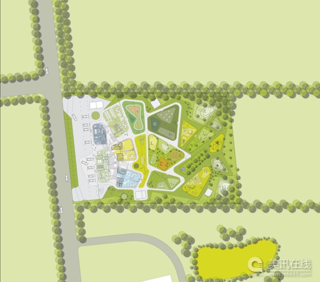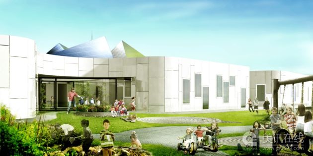 CEBRA公司一直在為年輕的使用者設計建筑,而他們最新的設計幼兒園打算打破傳統學校的框架,從而激發小孩的好奇心和創作力。這個設計還在進行之中,幼兒園的結構以不同“主題”為出發點,專注于特定一項活動,如藝術、設計和建筑。對于丹麥的幼兒園來說,這確實是一種創新,它對小孩進行的學前教育不再是通過正式課程,而是通過玩耍。而且本次設計還邀請了不少父母參與,讓他們提供意見。 有位建筑師的教育觀是這樣的:“如果用建筑來教育孩子的話,我們應該可以避免教育他們傳統的建筑特點。一間屋子不一定非要有斜屋頂,房門不一定要在中間,窗戶不一定都在房子兩端,這些都是小孩應該學會的。只要小孩子們充分想像,房子可以是任何形狀的。” 幼兒園有五個滴狀結構,其中兩個是員工區,另外三個是孩子集體活動區。集體活動區分散布置在花園一側,這樣孩子們可以看到風景。每個區都有固定的教育目的,在這里孩子們通過玩耍能學到顏色、形狀、幾何方面的知識。 按水平面分,建筑分成兩部分,5個滴狀基座和共同聯通的屋頂。滴狀基座采用白色色調和曲線墻壁設計,看起來向是卷紙,小孩子可以用他們自己的畫和雕塑品來裝飾墻面。尖尖的多彩天窗的裝飾設計由涂鴉藝術家Huskmitnavn完成,它講是孩子們靈感的來源,并告訴小孩和家長:“在某個時刻,藝術既有趣又嚴肅。” ![]() ![]() ![]() ![]() ![]()