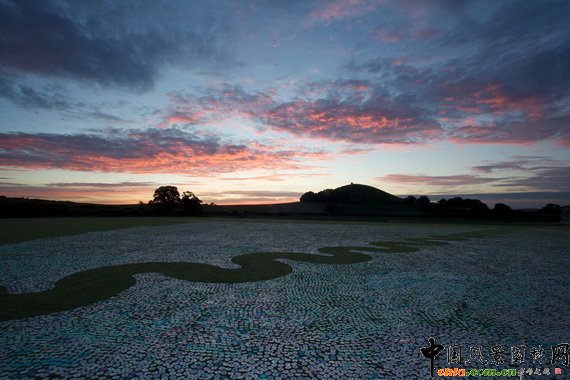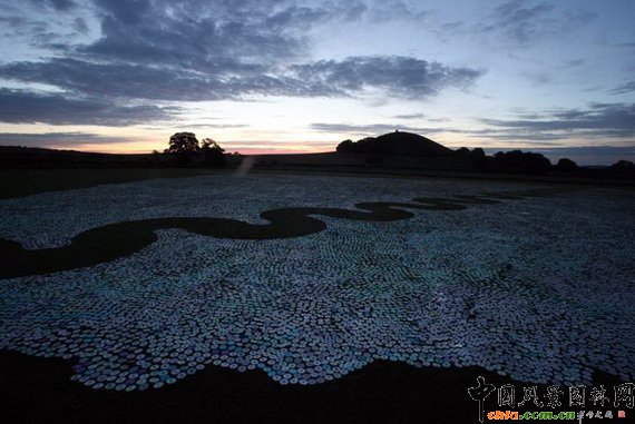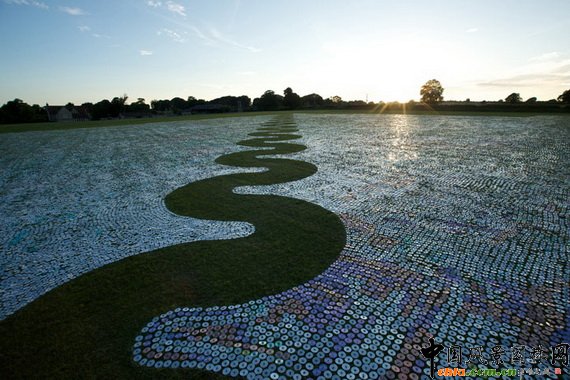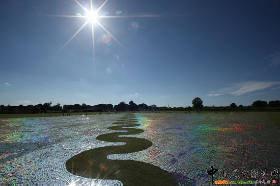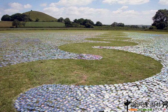 中國(guó)風(fēng)景園林網(wǎng)訊 以勇于嘗試而聞名的雕塑家Bruce Munro再出新作。在英國(guó)出版社、BBC廣播的大力支持下, Munro從數(shù)周前就在收集廢棄光盤。獲知消息的讀者、聽(tīng)眾紛紛將光盤寄送到Munro的工作室,其中還有來(lái)自加州、巴西的支持者寄送的光盤。 Munro稱,他十分感謝這些支持者。完成的“光盤海(CDSea)”作品像是一幅以草地為底板的巨幅繪畫,令人驚喜。 在上上個(gè)周末(6月19、20日),140人幫助Munro完成了這個(gè)作品。草皮是提前修剪過(guò)的,周六時(shí),他們開(kāi)始擺放光盤,并在光盤上放置石頭,以防風(fēng)吹動(dòng)光盤。擺放的過(guò)程相當(dāng)耗時(shí),結(jié)果是,60萬(wàn)張光盤向鏡子一樣在日光、月光下發(fā)出耀眼的光芒。 當(dāng)Murno還是小孩時(shí)他就喜歡“玩光”,他發(fā)現(xiàn)這種熟悉的事物能改變自己的情緒狀態(tài)、思想。光對(duì)他的影響一直持續(xù)到現(xiàn)在。“光盤海”的概念誕生于30年前的悉尼尼爾森公園,后來(lái)那里成了Murno的沉思場(chǎng)所。Murno 說(shuō),“當(dāng)我觸摸到海水時(shí),我似乎回到了我的家鄉(xiāng)——位于英國(guó)的索爾科姆,那里居住著我的父親... ...返回海灘時(shí),“光盤海”的框架就縈繞在我腦海中了。” 該作品將展出兩個(gè)月。展后,這些光盤將被送往回收站。