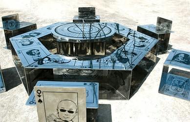 《牌戲時代——博NO.2》 ![]() 《中國五千年與世界文明聚餐》 ![]() 《鐵哥們》系列 ![]() 《鐵哥們》系列 ![]() 《迎風》 ![]() 《星空》 ![]() 作為宣傳寶山“低碳·環保”旅游的一張名片,二○一○年上海國際鋼雕藝術節于九月二十六日在上海國際節能環保園舉行。作為上海旅游節寶山地區系列活動的第二場,本屆鋼雕藝術節以“資源再生利用、藝術創造價值”為核心,以“鋼雕之約”為主題,組織藝術家、設計師對廢舊鋼鐵材料進行跨界藝術創作,展現鋼鐵的陽剛之美。 作為2010年上海國際鋼雕藝術節的舉辦地——“后工業生態景觀公園”(即鋼雕公園),位于寶山吳淞工業區南部長江西路,原為我國冶金行業中八大重點鐵合金生產企業之一的上海鐵合金廠,曾經是上海“出名”的耗能排污大戶,每年消耗掉上海市1/200用電量,14座鐵合金生產電爐年排塵量高達3000余噸,在上海產業結構調整中,這家工廠于2006年停產。 壯士斷臂,鳳凰涅槃。如今,昔日的耗能大戶成了節能宣傳員。 2008年秋天,上海市有關部門和寶山區政府在上海鐵合金廠原址上建成了上海國際節能環保園,成為國內外最新環保技術和產品的展示、交流、交易平臺。同時,園內辟出5萬平方米建立全國首家鋼雕主題公園,上海鋼雕藝術節組委會邀請組織國內外藝術家,以原鐵合金廠遺留的廢舊鋼鐵為制作材料,進行主題創作,營造出了獨一無二的后工業景觀公園。從2008年起,鋼雕公園作為永久的鋼雕創作、展示、交流和交易基地,每年舉辦鋼雕藝術節,展示最新的鋼雕藝術品,吸引了不少喜愛鋼雕藝術的游客。