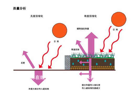 從建筑角度來看,屋頂綠化有利于改善建筑的外觀,遮蓋影響視覺效果的屋頂或墻體;有利于緩解建筑物熱脹冷縮而導致的屋頂裂紋引起的損害.以及防水層的老化和滲漏;有效地降低屋頂表面的溫度,從而達到節能的目的:發生火災時,還可以保護建筑物和燃燒延遲的作用。