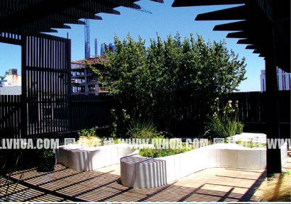屋頂綠化作為城市綠化的一種方式.不僅增加了城市的綠量.美化了景觀.同時.在生態方面的貢獻也是相當突出的。實驗表明,屋頂綠化可以很好地改善城市的環境和氣候.緩解城市的”熱30 l International New Landscape·島效應”.調節城市的溫度、濕度;植物可以吸收熱能,濕潤空氣.滯留塵埃,樹可以吸附灰塵,吸收二氧化碳.釋放氧氣i植物還可以吸收有害氣體.殺滅細菌;同時,它還可以有效截流70%的天然降水等等。