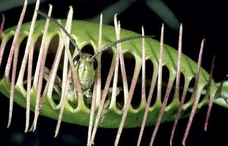 圖6、捕蠅草抓到一只螞蚱。