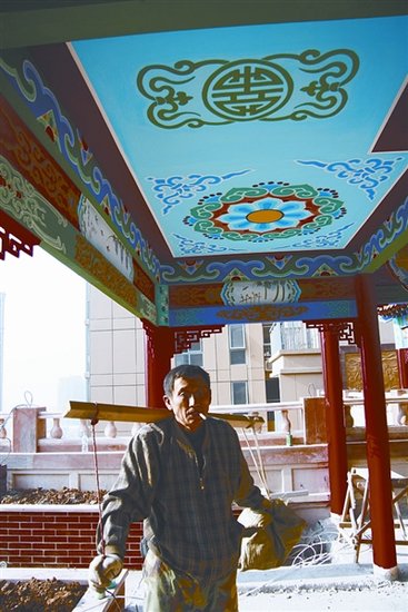 違建房修成豪華古典建筑式樣。 亭臺(tái)樓榭、假山怪石、黃瓦彩畫……在漢口后湖香利國庭小區(qū),一幢14層住宅樓樓頂平臺(tái)上的“空中花園”頗有中國北方皇家建筑特色。昨日,有市民向本報(bào)新聞110反映:這座“空中花園”算得上是“史上最美違建”。 記者昨日實(shí)地探訪。在香利國庭小區(qū)2棟2單元的14層頂樓平臺(tái)上,“空中花園”已頗具規(guī)模,業(yè)主在平臺(tái)西南面搭建的亭臺(tái)非常氣派:四角飛檐,朱紅圓柱,黃瓦彩畫,輝煌富麗,平臺(tái)上還裝飾有怪石、假樹和長廊。工程尚未完工,幾名工人正在進(jìn)行最后的裝修。 香利國庭興瑞物業(yè)公司工作人員稱,業(yè)主姓柳,買了2棟11樓到14樓共4層的房子,是兩套復(fù)式,“樓頂上的工程,通過了審批”。