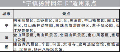 2011年南京市公園年卡昨天正式發售,景點由今年公園年卡的27個景點增加至35個,另外,南京、鎮江、揚州三市還推出“寧鎮揚游園年卡”,包含寧鎮揚三市的23個景點景區。