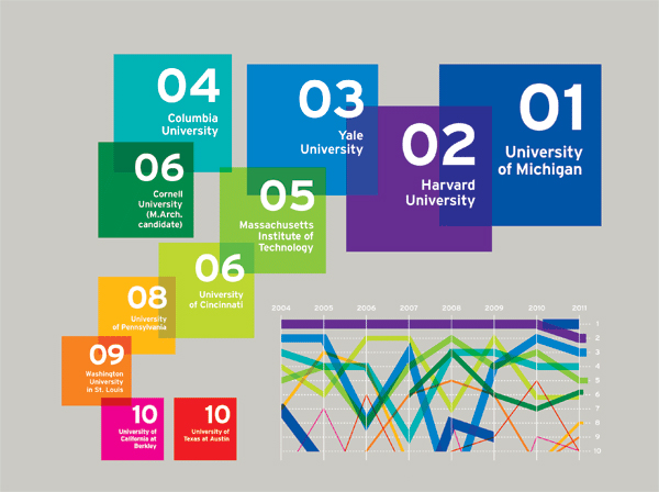 中國風景園林網 James Cramer 和Greenway集團聯合編制的《2011美國最佳建筑設計院校》出版,通過一系列的圖標數據分析而得出了2011美國最佳建筑與設計院校排名。