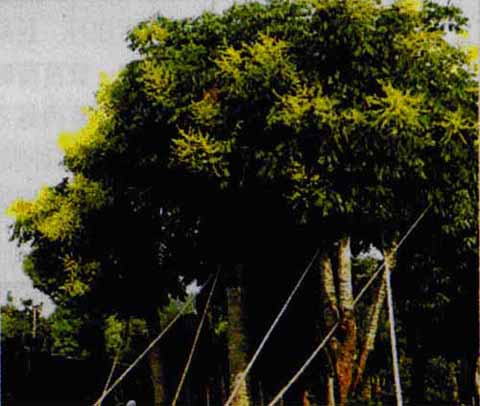 ![]() 欒樹又稱大夫樹、燈籠樹,學名Koelrenteriapaniculata,為無患子科、欒樹屬的落葉喬木。樹形端正,冠多傘形。枝葉繁茂秀麗,春季嫩葉紅色,夏花滿樹金黃色,入秋蒴果似盞盞燈籠,果皮紅色,絢麗悅目,在微風吹動下似銅鈴嘩嘩作響,故又名“搖錢樹”。種子可制成佛珠,寺院中常見種植。 形態(tài) 落葉喬木,高達20米,樹冠近圓球形,樹皮灰褐色,細縱裂。小枝稍有棱,無頂芽,皮孔明顯,奇數(shù)羽狀復葉,小葉7~15厘米,卵形或長卵形,邊緣具鋸齒或裂片,背面沿脈有短柔毛。頂生大型圓錐花序,花小金黃色。蒴果三角狀卵形,頂端尖,紅褐色或桔紅色。花期6~7月,果期9~10月。 生態(tài)習性 欒樹為溫帶、亞熱帶樹種。喜溫暖濕潤氣候;喜光,亦稍耐半 陰;喜生長于石灰?guī)r土壤,也能耐鹽漬性土;耐寒,耐旱,耐瘠薄,并能耐短期水澇,適合在南方生長。深根性,生長中速,幼時較緩,以后漸快。對風、粉塵污染、二氧化硫、臭氧均有較強的抗性。枝葉有殺菌功能;花為優(yōu)良的蜜源;并可提取黃色染料。 繁殖和栽植 欒樹的繁殖以播種為主。秋季果熟時采收,及時晾曬去殼。因種皮堅硬不易透水,如不經(jīng)處理第2年春播常不發(fā)芽,故秋季去殼播種,可用濕沙層積處理后春播。一般采用壟播,垅距60~70厘米,因種子出苗率低,故用種量大,播種量每666平方米30~40千克。分蘗、根插亦可。 欒樹栽培管理較為簡單,移植時適當剪短主根及粗側根,這樣可以促進多發(fā)須根,容易成活。 在園林中的應用 應用:欒樹早春的嫩芽,經(jīng)水泡加工后,是營養(yǎng)豐富的野菜;欒樹花期、果期觀賞性強,是很好的園林綠化樹種。 園林用途:欒樹樹形端正,枝葉茂密而秀麗,是很好的庭蔭樹和行道樹種;春季嫩葉多為紅色,而 入秋葉變黃色,是理想的觀賞樹木。同時欒樹也是很好的水土保持及荒山造林樹種。宜作庭蔭樹、行道樹及園林景觀樹,也可用作防護林與水土保持及荒山綠化樹種。葉可提制栲膠;花可作黃色染料;種子可榨油,供制肥皂及潤滑油用。 總體來說,欒樹是非常優(yōu)秀的季相樹種。在一年的生長周期中,它可觀葉、觀花、觀果,在設計中極受青睞。而作為一個優(yōu)秀的景觀樹種,欒樹同時兼具美觀、防護、環(huán)保、實用的功能。