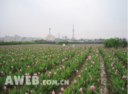 (一)品種選擇 在國外姜荷花品種已相當豐富,有‘清邁粉’、‘清邁紅’、‘清邁白’、‘清邁雪’、‘藍月亮’等不同顏色的品種,及‘寶石’、‘彩虹’等一些植株較高大的品種,也有一些植株較矮的盆栽品種。而在國內作切花生產的則多選用苞片為粉紅色的‘清邁粉’。 (二)選用優質種球 姜荷花的地下部分由球莖和貯藏根所組成,球莖的大小與貯藏根的多少,會直接影響切花和種球的產量,特別是前期切花的產量。種植時應選擇球莖直徑1.5cm以上,且帶3個以上貯藏根的種球為宜。 (三)適時種植 筆者近幾年在廣東省東莞市進行姜荷花生產,對姜荷花在東莞的生產情況比較了解。在東莞適宜的種植期為2月底至4月初,最好在4月份雨季來臨之前種植完畢,土壤以沙質壤土為宜,種植前先整地做畦,畦寬70-80cm,溝寬20-30cm,每畦種2行,株距7.5-12.5cm,每畝需種球10000-17000球左右。種后在畦面蓋稻草以保濕、防雜草及防止雨水沖涮,畦溝噴丁草胺防雜草過早萌發。 (四)肥水管理 種植前每畝施復合肥(N、P、K含量均為15%)25kg作底肥,萌芽后每10-15天追肥一次,每次每畝施復合肥25kg,施肥量、施肥次數視葉色、花色適量增減。姜荷花的整個生長期正值雨季,真正需要灌水的時間不多,主要是注意排水,防止水浸,土壤過干時應適當灌水以保持濕潤。 (五)適當遮蔭 姜荷花在露天栽培下,切花長度約為40-60cm,遮蔭處理則可達70cm以上且能有效減少花苞末端綠色斑塊,可在生長前期用遮光率為30%的遮蔭網適度遮蔭以增加切花長度,但在植株生長茂密時要及時將遮蔭網拆除,否則容易造成植株徒長,影響花的品質。 (六)病蟲害防治 蟲害主要有夜蛾、螻蛄等,病害有赤斑病、炭疽病等。每15天左右施藥一次,用甲胺磷、殺蟲雙及多菌靈、托布津、代森鋅等農藥輪流噴施。同時要避免連作及不要與姜科作物輪作。 (七)切花的采收與運輸 當有3-5片苞片展開時為姜荷花切花采收適期,正確的采收和運輸方法是姜荷花能否種植成功的重要一環。姜荷花切花品質的優劣與植株含水量的多寡密切相關。清晨采收,切花具較高的水分含量,以5-7時采收最佳,瓶插壽命最長,采收后應將花立即插到水里吸水,吸足水后,如作1小時左右的短途運輸,運送過程鮮花可不帶水,但如果是時間較久的遠距離運送,則運送過程中鮮花需要帶水,才能保證鮮花的質量。按照以上的方法,姜荷花瓶插15天是不成問題的。另外,為增加母株保留的葉片數量,以提高切花及種球的產量,切花采收時只需帶1片葉即可。