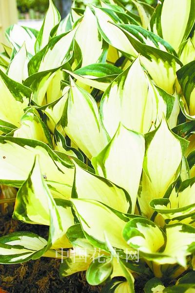 該品種由北京市花木公司研發,最大的特點是葉片以淺黃色為主,邊緣覆蓋翠綠色條紋,作為林陰地被植物,別致的葉色使之看起來層次清晰、氣氛熱烈。栽培時盡量安排在光照不強烈的樹陰下、建筑物北側等,作為盆花也具一定觀賞價值。