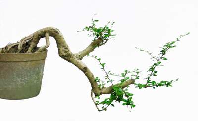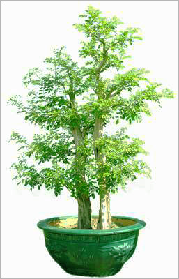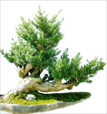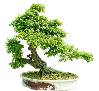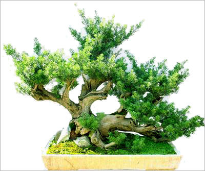 樹木一本多干,大小不一。數枝干高低參差,前后錯落,有聚有散,配置均衡,搭配有致,講究深度。一頭多干的盆樹多為單數,便于布局造型。