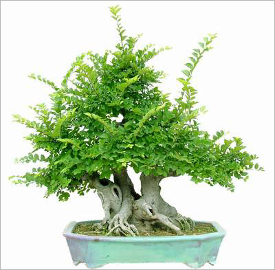 樹一本雙干,自盆面而長,或筆直,或一直一斜