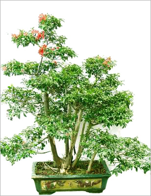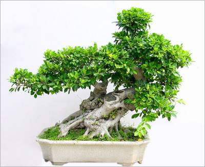 盆景,一般以某些樹和石塊等為基本原料,經一定藝術加工后,配植于盆缽之中而成。根據盆景的制作方法與欣賞目的的不同,以及選用材料與形式的不同,大致可分為樹樁盆景和山水盆景兩大類。樹樁盆景以培植植物為主,主要有大樹型、木棉型、雙士式、一頭多干式、飄斜式、臥盆式、蟠曲式、懸崖式、叢林式等。山水盆景以模擬山水為主,主要材料是各種石料及點綴植物、配件。嶺南盆景以樹樁盆景為主。下面分述各式盆景的主要形態特色。