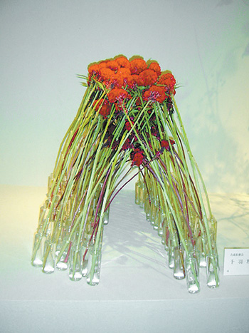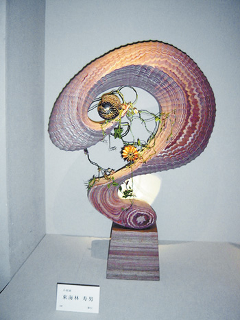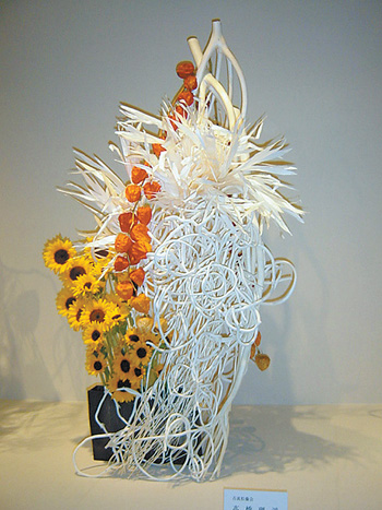 古流松藤會插花 古流松藤會插花流派于1916年創(chuàng)立,在發(fā)展日本傳統(tǒng)插花“生花”的藝術(shù)風格同時,導入了“自由花”的概念,它是為迎合現(xiàn)代生活環(huán)境和新的感覺而產(chǎn)生的樣式!白杂苫ā彪m不像“生花”有既定的比例、形狀,是插花人發(fā)揮個性的自由創(chuàng)作,但也不能無視基本法則,在自由形狀中也要遵守一定的平衡、動感和空間構(gòu)成,同時,要考慮整體的構(gòu)圖、立體感以及花、葉、枝、果實的色彩要素。