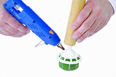 1.將竹筒的一端與花束手柄固定器的下端用熱膠粘合起來。