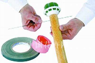 3.用金屬絲穿過小孔,并纏繞在竹筒與固定器相連接部位的附近,以加固二者的連接,然后用防水絲帶將金屬絲覆蓋。
