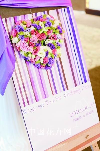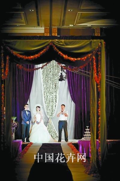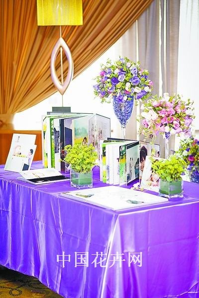 案例:不久前,在福州香格里拉大酒店,舉辦了一場結合時下風靡歐美的“BLING-BLING(閃亮)”流行元素設計的婚禮。奪目、閃亮,簡約中略帶夸張的婚禮場景,完美地彰顯了新人追求時尚的個性。此場設計由福州海藻園花藝工作室完成。 客戶要求:新人喜歡閃亮元素,喜歡簡約中的華麗,不喜歡傳統的球形花藝設計,偏愛線條感強的設計。 設計思路:婚禮中的設計元素不能多而雜,要把不同元素有機融合到一起。本場婚禮重點設計舞臺,突出閃亮和簡約感;以新人喜愛的紫色,結合線條感作品,共同突出簡約中的華麗感。 新人時尚、大膽,在舞臺設計時,設計師想象一種“玩兒”婚禮的心態,將舞臺設計成一場特殊的表演將要進行的樣子———以極具舞臺感的厚重紫色絨布作為帷幕拉開,背景是灰白色絨布配上一層亮片布,這層亮片布會隨著燈光反射出不同顏色。舞臺上除了頂棚有花串做的花亭,地面上有花瓣路引之外,沒有任何其他花飾。 由舞臺延伸出的紫色無處不在,就像油畫中的油彩暈染開的感覺。桌花、展示區花飾、指示牌花,新娘的捧花、新郎的襟花、伴郎的領帶、伴娘的腰帶……和諧而統一。 桌花以晶瑩的高腳杯為容器制作,紫色為主調的花球中突出線條感,玻璃杯中填充的不是常用的清水或葉子,而是剪碎的略帶熒光的紫色包裝紙,這是為了整體延續閃亮簡約風;展示區的花飾設計與之一脈相承,紫色搭配的黃綠色,是延續新人相冊中的主色調,非常和諧;迎賓牌的背景很有特色,是設計師自己設計的數碼打印品,圖案中清晰地表現了線條之美。 迎賓背景是設計亮點,它大幅度地延續線條感,將彩色馬蹄和水蔥這兩種極具線條感的花卉結合,略帶夸張的設計,極符合這對新人的外向性格。深紫色的馬蹄蓮做成的手捧花,裝飾華麗的深紫色緞帶,簡單卻非常有質感。 設計師自評:由于這場婚禮中新人的配合度很高,比如新人站在舞臺上得體自然,為婚禮氣氛的營造增添了細節的完美。燈光設計由于依然強調婚宴而不是舞臺氣氛,配合上略顯不足。