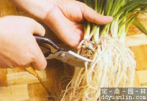 (2)剪去老根.剪去枯黃葉片。