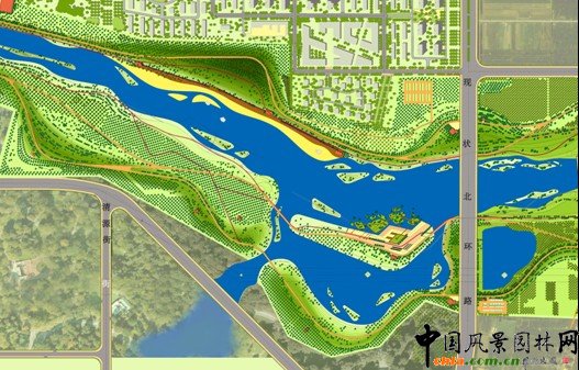 風(fēng)景園林有工程的東西,如何解決景觀形態(tài)的工程性與藝術(shù)性之間的矛盾?如何讓景觀蘊(yùn)含“自由精神”,“藝術(shù)氣質(zhì)”?還是舉例來(lái)說(shuō)明,在濰坊市白浪河設(shè)計(jì)項(xiàng)目中有兩道平行的防洪堤壩,就像兩道平行直線,比較生硬,劉教授就在設(shè)計(jì)中盡量增加一些景觀變化,把它藝術(shù)化。 規(guī)劃設(shè)計(jì)理念之四:生動(dòng)