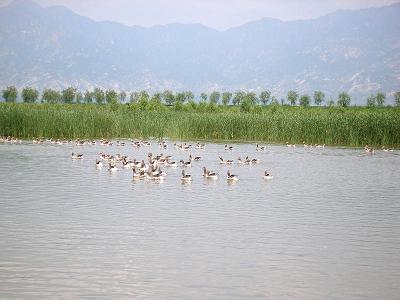 北京延慶野鴨湖濕地自然保護區位于北京市西北部,北面是燕山山脈,南面是太行山脈,東南是雄偉的八達嶺長城。野鴨湖濕地自然保護系延慶縣所轄官廳水庫(海拔479米)水系及媯水河下游的環湖灘涂組成的次生性濕地,這里魚蝦豐富,水茂盛,水鳥眾多,野鴨湖濕地保護區棲息的鳥類達到241種,其中國家一級保護5種(黑鸛、東方白鸛、大鴇、金雕、白尾海雕),二級保護34種(白天鵝、灰鶴、鴛鴦、鵜鶘)等,這里是冬春南北遷飛候鳥的理想中轉棲息地。其中列入北京市一、二級保護動物達98種。春秋遷徙的候鳥達到上萬只,在野鴨湖濕地自然保護區成千上萬的天鵝、灰鶴、雁鴨、鷺、鶴群棲非常壯觀。每年10月至第二年4月有數千只灰鶴在這里越冬,到夏季除部分水禽留在保護區生兒育女外,同時還有葦鶯、黃鸝等多種鳴禽唱著悠揚動聽的歌。