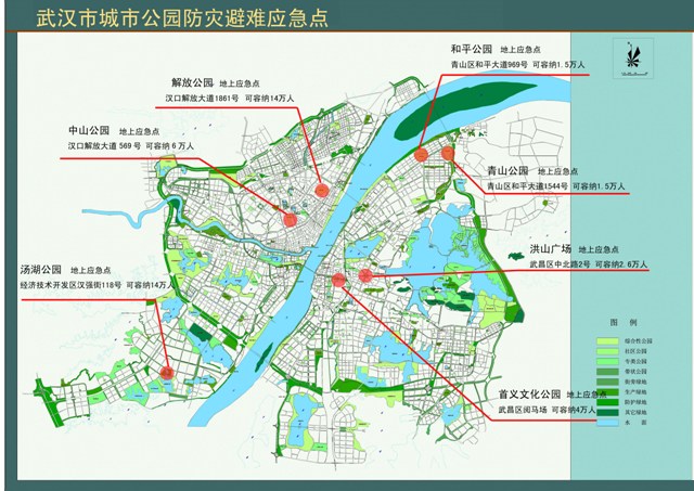 目前,經(jīng)武漢市應急辦確認的市級城市公園防災避難應急點有6個:中山公園、解放公園、洪山廣場、和平公園、湯湖公園、武昌首義文化公園。