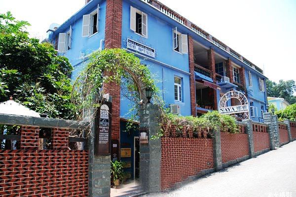 1842年簽訂《南京條約》(割讓香港島,開放廣州、廈門、福州、寧波、上海五處為通商口岸等)后,法國、美國、德國、日本、西班牙、荷蘭、丹麥、瑞典、挪威等殖民主義者,蜂擁踏上了鼓浪嶼。鼓浪嶼這個彈丸之地,成為各國領事館聚集的“萬國領事館”。這棟藍墻白窗的建筑1870年-1918年之間是德國駐廈門的領事館。現為娜雅家庭旅館和咖啡館。