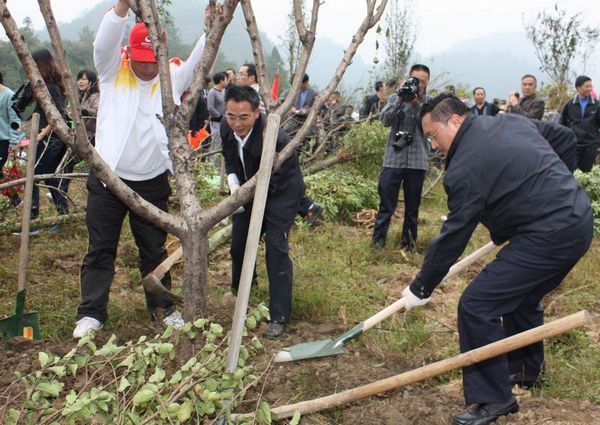 縣委書記陳勇率領縣級機關干部在縣城金銀山上植樹