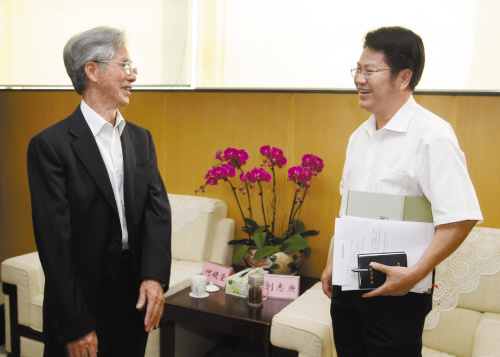 劉志庚會見何鏡堂,就東莞市地名文化公園概念性規(guī)劃設(shè)計(jì)交換意見