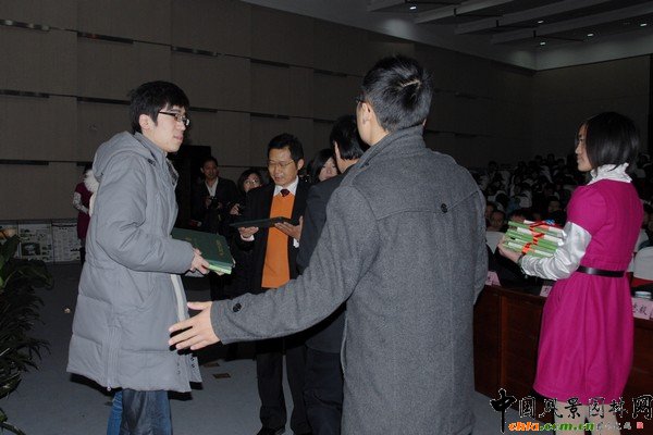 南京林業大學副書記、副校長萬福緒為園冶杯獲獎學生代表頒發一等獎