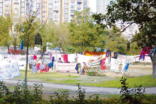 除了雨雪打壓,一些市民的不文明曬衣被行為也在傷害樹。本報記者劉濟海攝