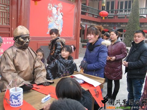 再次,是豐富多彩的大宋民俗文化活動。廟會期間有上百個民俗文藝團體在30多個表演點同時作精彩演出,為歷屆翰園廟會之最。特邀烏克蘭激情舞蹈、廣西歌舞、山西鑼鼓、正宗吳橋雜技、朝鮮族舞蹈、東北高蹺等,使游人不但可以觀賞到雅俗共賞的節目,還可以領略到異國風情。萬歲山會場以大宋江湖俠文化為核心,推出了近20部實景劇,如智取生辰綱、醉打蔣門神、十字坡、英雄救美、比武招親等,讓游人步入江湖,流連其中,驚嘆震撼。在翰園會場,有大宋年俗文化展和大宋詩詞文化展,圖文并茂,再現了宋代民俗文化活動的真實情況。會場內還有幾十項民俗展示,如燃爆、踏芝麻桿、打春牛、推鐵環、踢毽子、抖空竹、打花棍、拉洋片、皮影戲等,有些項目游人還可參與其中,其樂無窮。兩大景區內還有精心打造的藝術雕塑,如照相、私塾、茶藝、寫春聯、宋代四大家(蘇黃米蔡)、黃包車夫、彈鋼琴等,或真人裝扮,或假人造型,惟妙惟肖,真真假假,令人稱奇,吸引了不少游人觀賞、拍照。