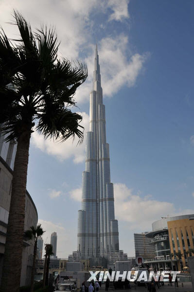 這是1月4日拍攝的位于阿拉伯聯(lián)合酋長國迪拜的“哈利法塔”(前稱“迪拜塔”)。阿聯(lián)酋當晚為高達828米的“迪拜塔”舉行盛大落成典禮,并以阿聯(lián)酋總統(tǒng)、阿布扎比酋長謝赫哈利法·本·扎耶德·阿勒納哈揚的名字將其命名為“哈利法塔”。新華社記者安江攝