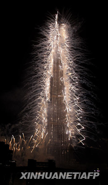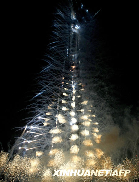 1月4日,位于阿拉伯聯合酋長國迪拜的“迪拜塔”在煙火的點綴下正式亮相!暗习菟碑斖砼e行落成典禮。據一份聲明稱,“迪拜塔”最終高度為828米。阿聯酋副總統兼總理、迪拜酋長謝赫穆罕默德·本·拉希德·阿勒馬克圖姆以阿聯酋總統、阿布扎比酋長謝赫哈利法·本·扎耶德·阿勒納哈揚的名字將“迪拜塔”重新命名為“哈利法塔”。新華社/法新