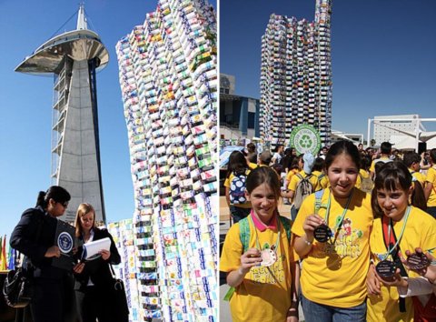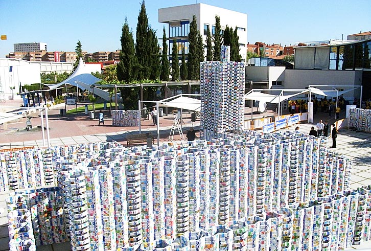 西班牙的這個夏天非常熱鬧,這個由牛奶紙箱構成的大城堡,刷新了不久前在西班牙北部的另一個回收項目而成為最大的雕塑。格拉納達大學建筑學院征集了當地5000名小學生參加了這個尋找紙板牛奶箱的比賽,出人意料的收集到了50000個紙箱來制作這個城堡。