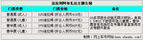 據了解,法拉利世界阿布扎比主題公園的票價分為普通票和豪華票兩種,其中普通成人票為225迪拉姆(折合人民幣418元),而豪華票為375迪拉姆(折合人民幣697元),可享有包括專屬休息想要茶點等額外服務。另外,還設置有身高1.5M以下的兒童票,價格要比成人票低很多。