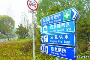 藍(lán)底白色箭頭、奔跑的小人圖案和中英文醒目字樣,一起構(gòu)成了北京應(yīng)急避難場(chǎng)所標(biāo)志(見(jiàn)上圖)。今后這樣的指示牌將越來(lái)越多。按照《北京中心城地震及應(yīng)急避難場(chǎng)所(室外)規(guī)劃綱要》,北京每年將增加20至30處應(yīng)急避難場(chǎng)所。目前所建的20余個(gè)郊野綠色公園也應(yīng)在其中。