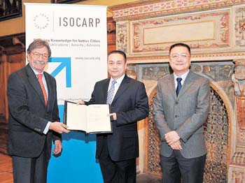 頒獎詞自2005年開始,我們設立了國際規劃師聯合會的最高榮譽獎項——全球杰出貢獻獎。這個獎項代表著杰出的、創新的理念或設計,為城市或地區發展作出了卓越的貢獻。這個獎項同時也是作為最好的專業規劃師聯合會之一的我們國際規劃師聯合會的榮譽。“全球杰出貢獻獎”是每年優秀的規劃和設計項目的標準,也是我們國際規劃師聯合會對未來城市規劃走向的一個基本判斷。獲獎項目至少在政策、研究和實踐三方面都具有杰出的代表性。2009年度有來自歐洲、北美洲、非洲和亞洲的2000多個項目參與評選,獲獎項目都很好地回答了氣候問題,并從低碳角度對城市規劃進行了探索。 我們認為,武漢城市總體規劃利用先進的科技手段,對現狀問題進行了深入研究,通過建立綠色基礎設施和城市交通之間的聯系,對微氣候學這個既是地方、又是全球關注的可持續發展重點問題,從城市規劃設計的角度進行解剖,提出了可持續的空間發展框架和策略,在協調生態保護與城市發展方面進行了寶貴探索,符合人類居住形態發展的先進理念,具有全球示范效應。 國際城市與區域規劃師學會 2009年11月8日
